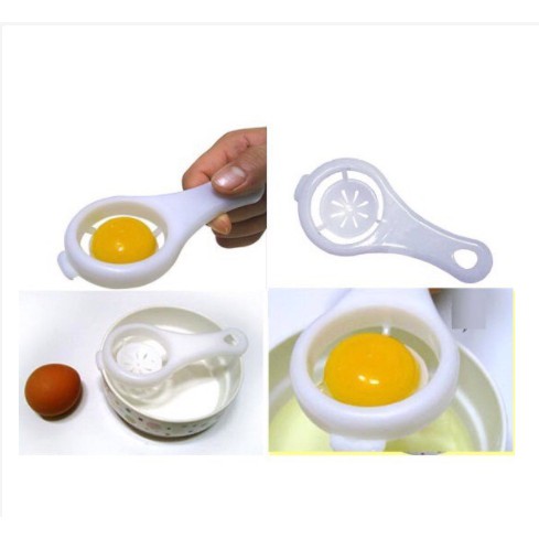 Bạn chỉ cần đập trứng vào dụng cụ tách lòng đỏ trứng này và lắc nhẹ, lòng trắng sẽ chảy xuống dưới và còn lại lòng đỏ nguyên vẹn ở trên cái vợt.