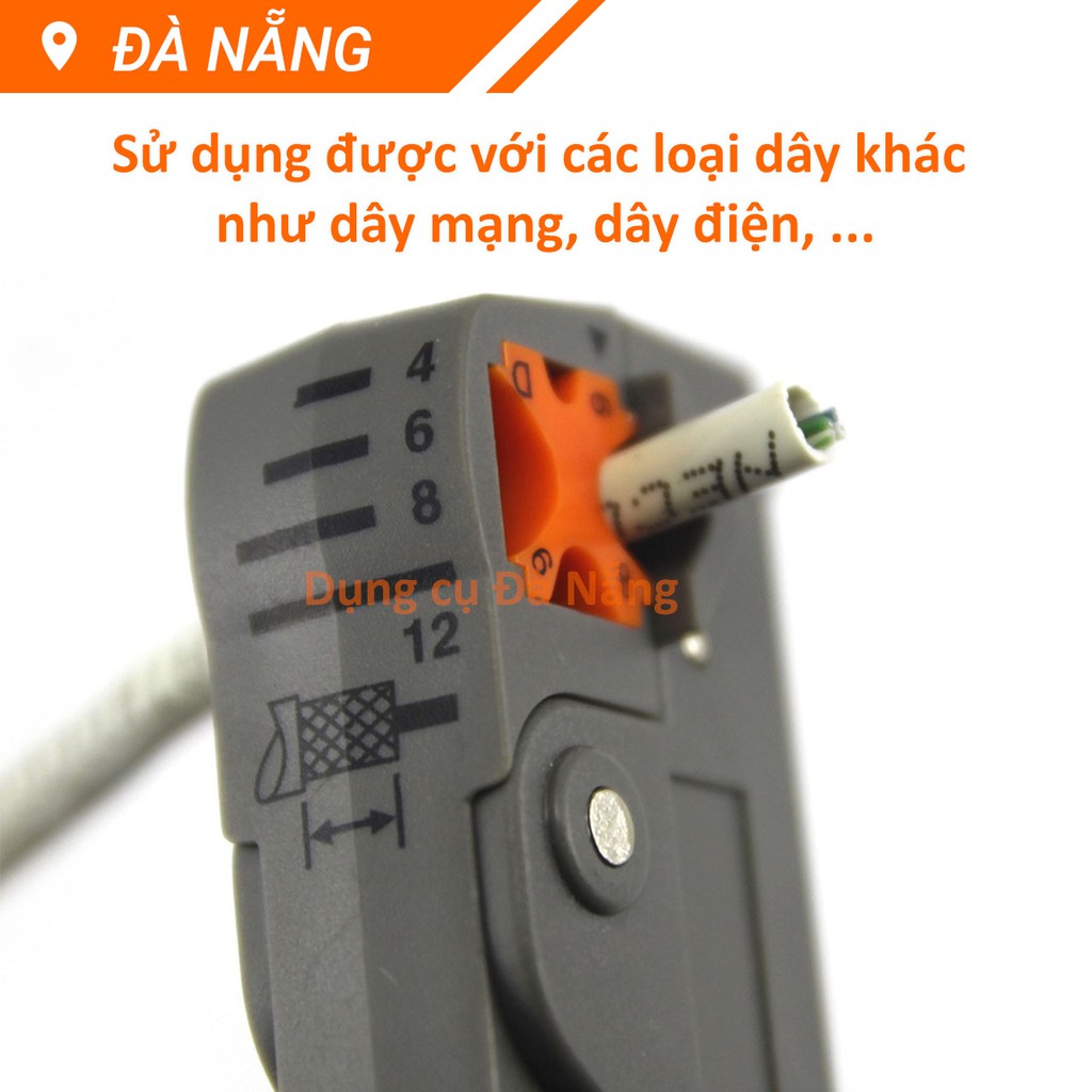 Dụng cụ tuốt vỏ dây cáp đồng trục, cáp mạng, dây điện rất tiện dụng và gọn nhẹ. Với khả năng điều chỉnh được độ sâu của cả hai lưỡi cắt vỏ ngoài và vỏ trong của cáp đồng trục bạn sẽ yên tâm không sợ xước hay đứt ống dẫn ngoài, lõi dẫn trong của cáp đồng trục. Chỉ cần MỘT THAO TÁC xoay tròn 3 giây là bạn đã có thể tuốt lớp vỏ cáp, lớp chống nhiễu, lớp cách điện !