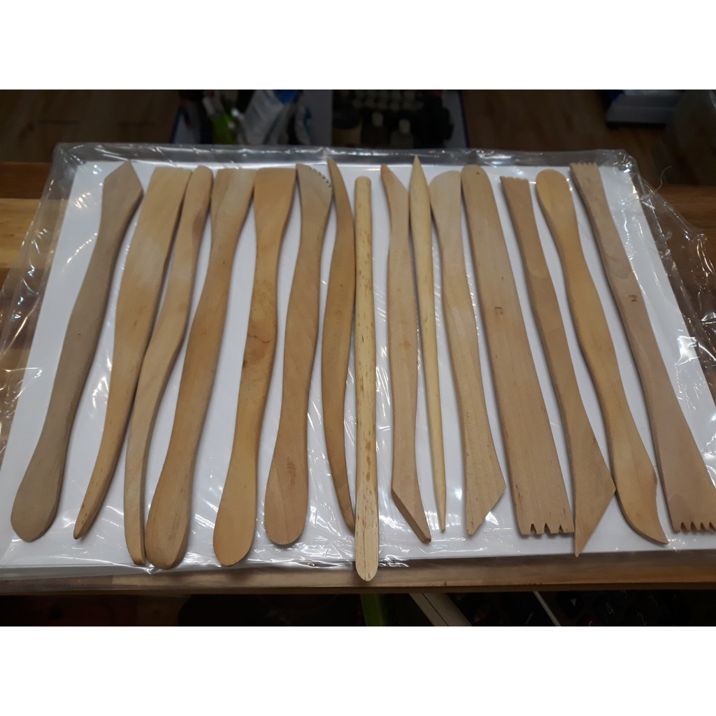 Bộ dụng cụ tạo hình cho đồ gốm, đất sét gồm 15 cây có các đầu tạo hình phong phú như hình. Thân bằng gỗ, dài 20cm#dungcuthucong #taohinhdatset #taohinhdogom #dungcumythuat