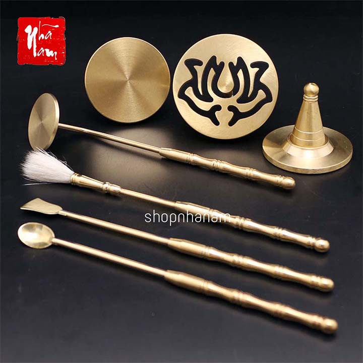 Bộ dụng cụ Tạo Hình đốt bột phong thủy, trầm bột, bột tài lộc chất liệu đồng nguyên chất
