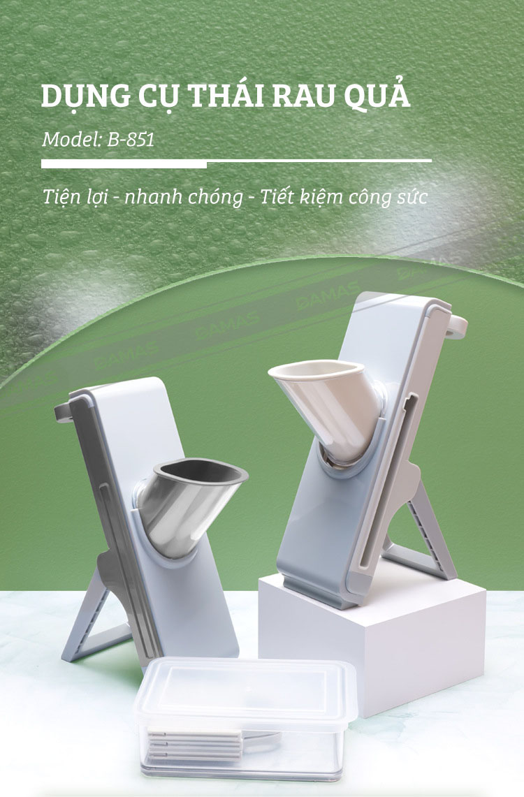 Dụng Cụ Thái Rau Củ Thông Minh - An Toàn Không Đau Tay, Tiết Kiệm Công Sức Khi Thái Rau Củ Quả DAMAS B851Dụng cụ cắt lát, bào sợi rau củ quả DAMAS B851 một trang bị cần có trong mỗi gian bếp giúp bạ...- Giao hàng toàn quốc