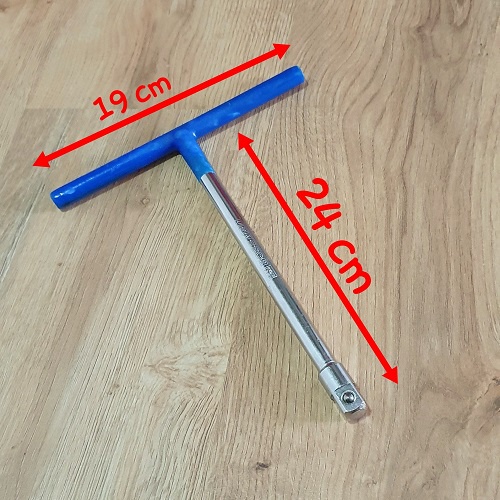 - Kích thước tổng thể cần siết chữ T 1/2 Cán bọc nhựa : Chiều dài: 24 cm; Chiều ngang cán: 19 cm