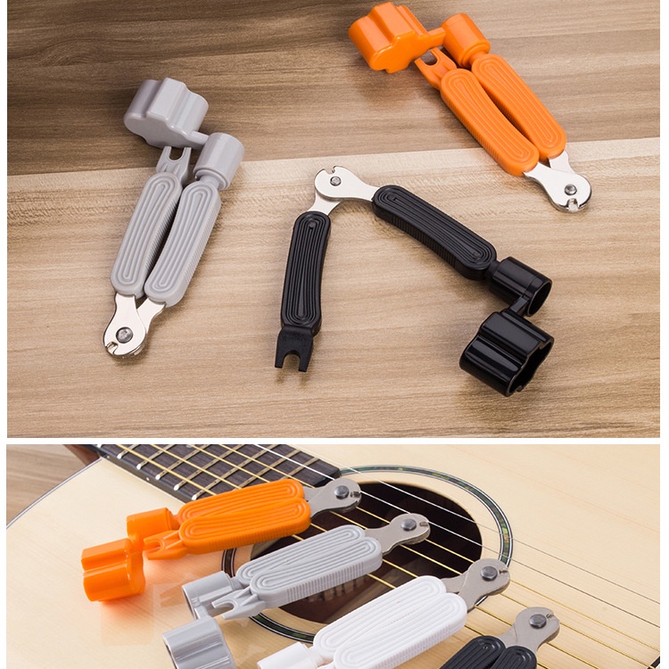 Dụng cụ thay dây đàn guitar đa năng 3 trong 1: Kiềm cắt dây (Cutter) + Tay quay lên dây (Winder) + Nhổ chốt (Pin puller)Dụng cụ thay dây đàn guitar đa năng là Một phụ kiện đa năng không thể thiếu cho người chơi guitar