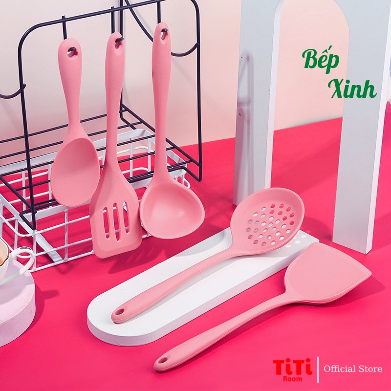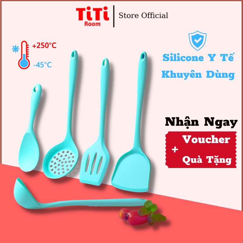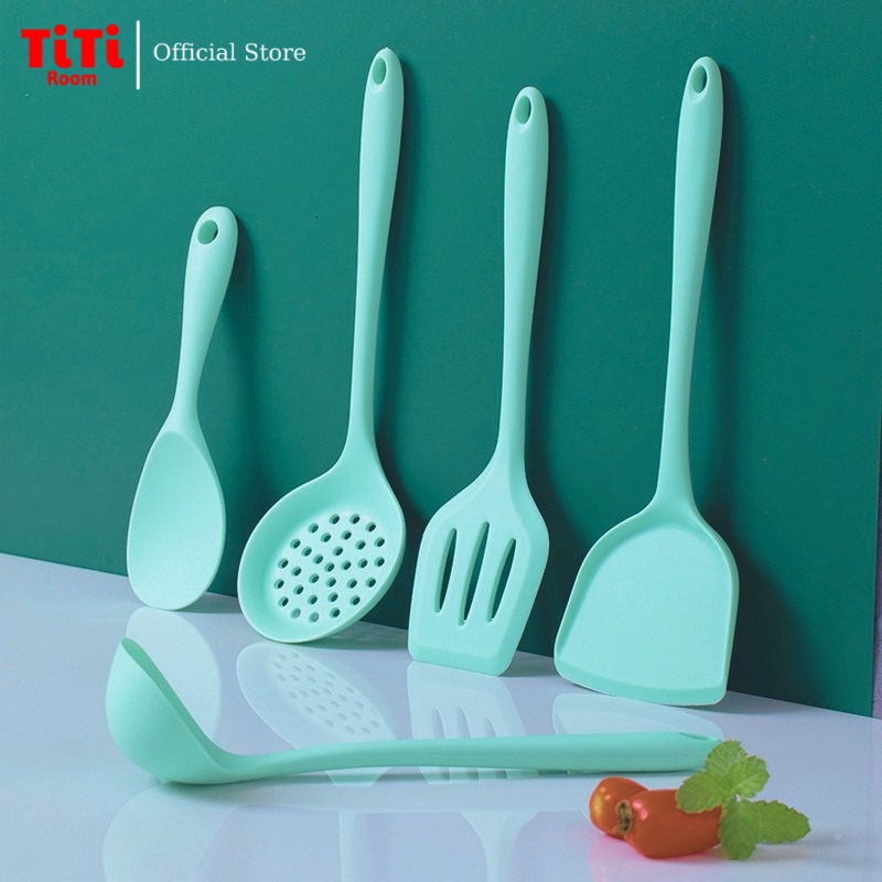Dụng cụ thìa nấu ăn nhà bếp silicon 5 món chịu nhiệt chống dính cao cấp Kitchen, Đồ dùng nấu ăn nhà bếp cao cấp TiTiRoom