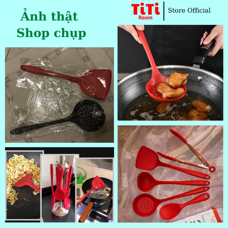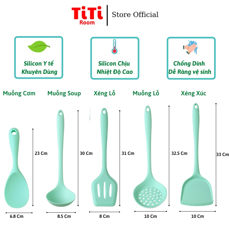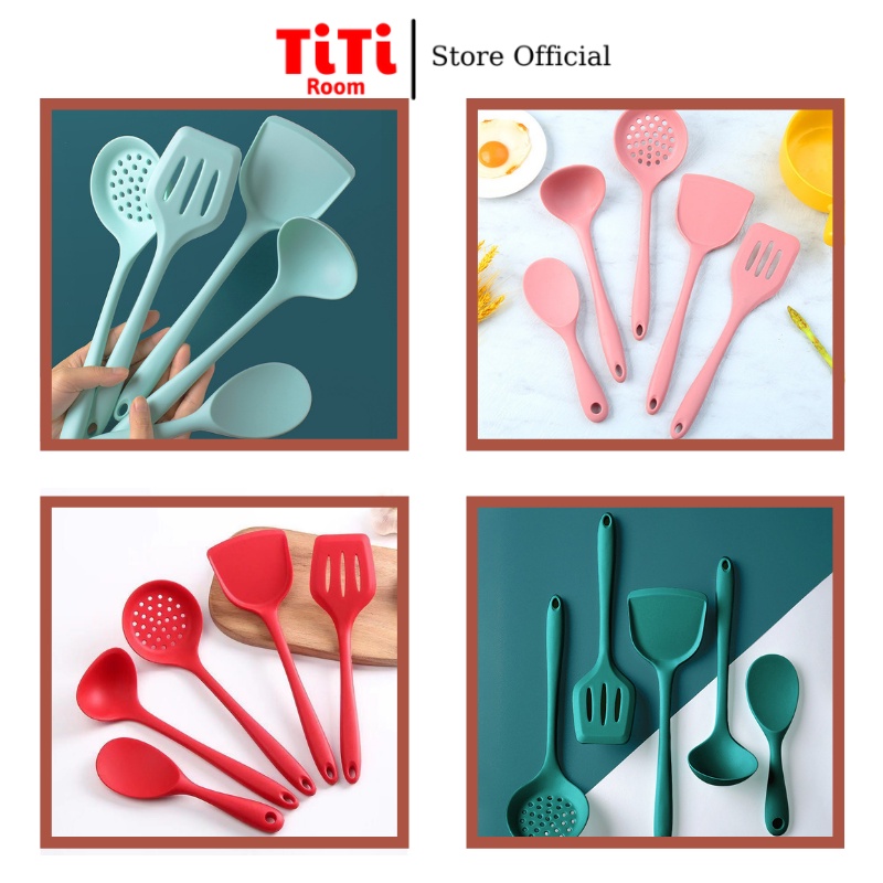 Giới thiệu Dụng cụ thìa nấu ăn nhà bếp silicon 5 món chịu nhiệt chống dính cao cấp Kitchen, Đồ dùng nấu ăn nhà bếp cao cấp TiTiRoom