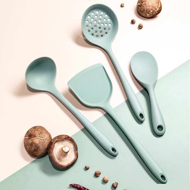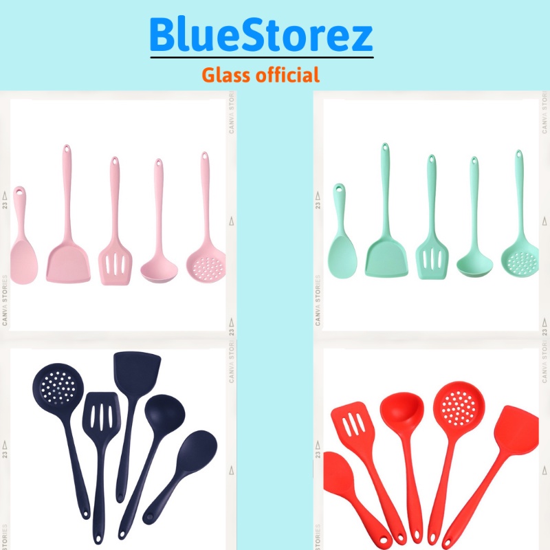 Bộ dụng cụ thìa nấu ăn nhà bếp Silicon , Set đồ dùng nấu ăn nhà bếp Silicon 5 món chống dính cao cấp Kitchen-BLUE STORE