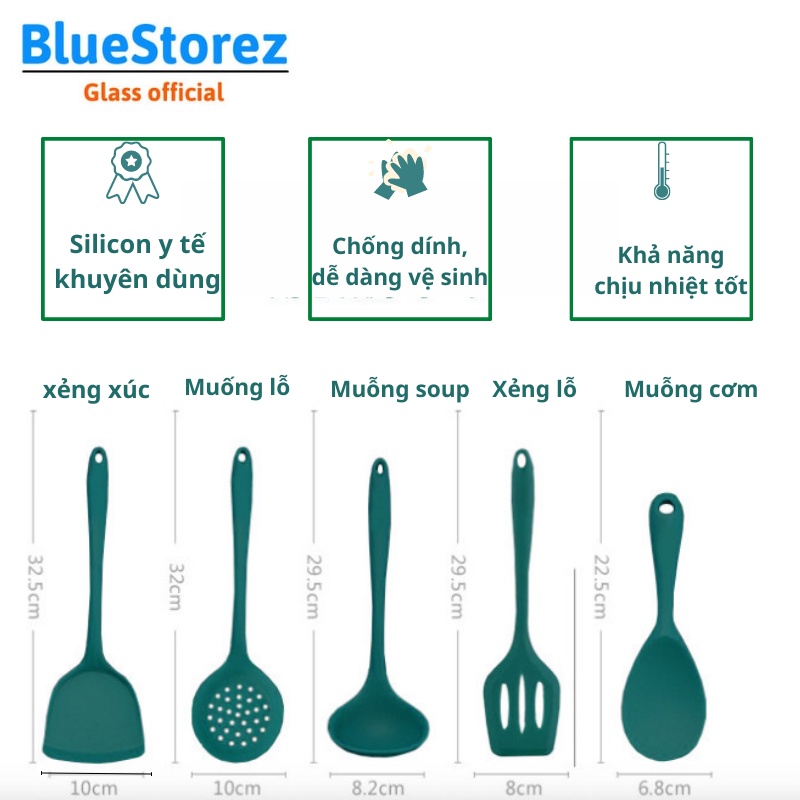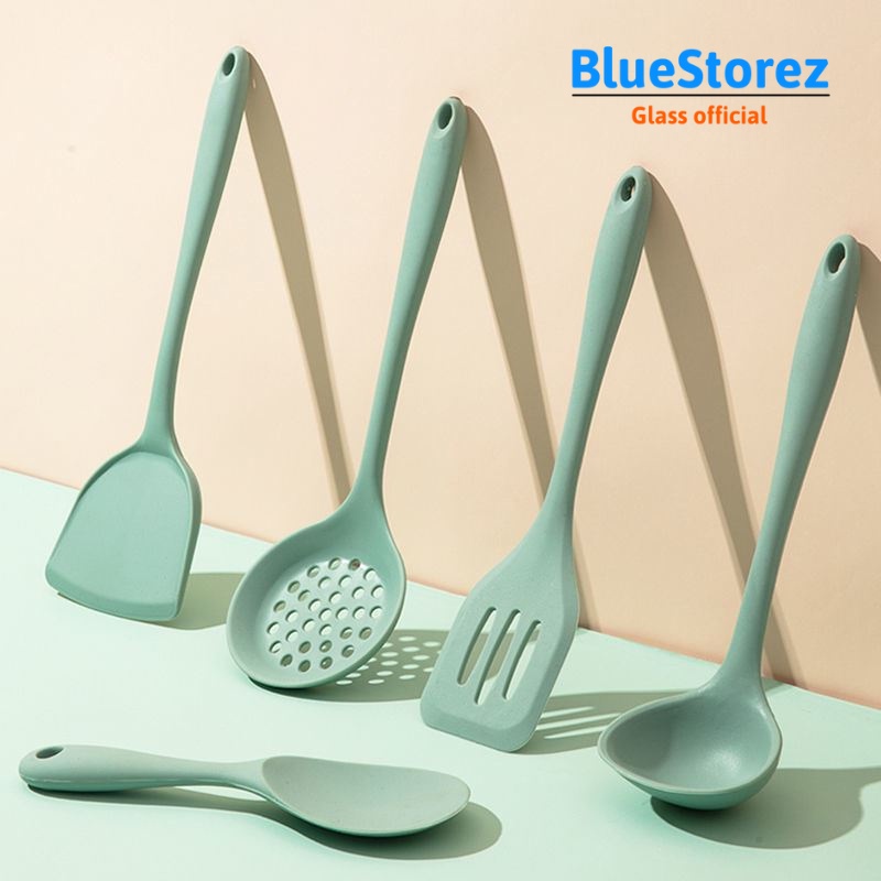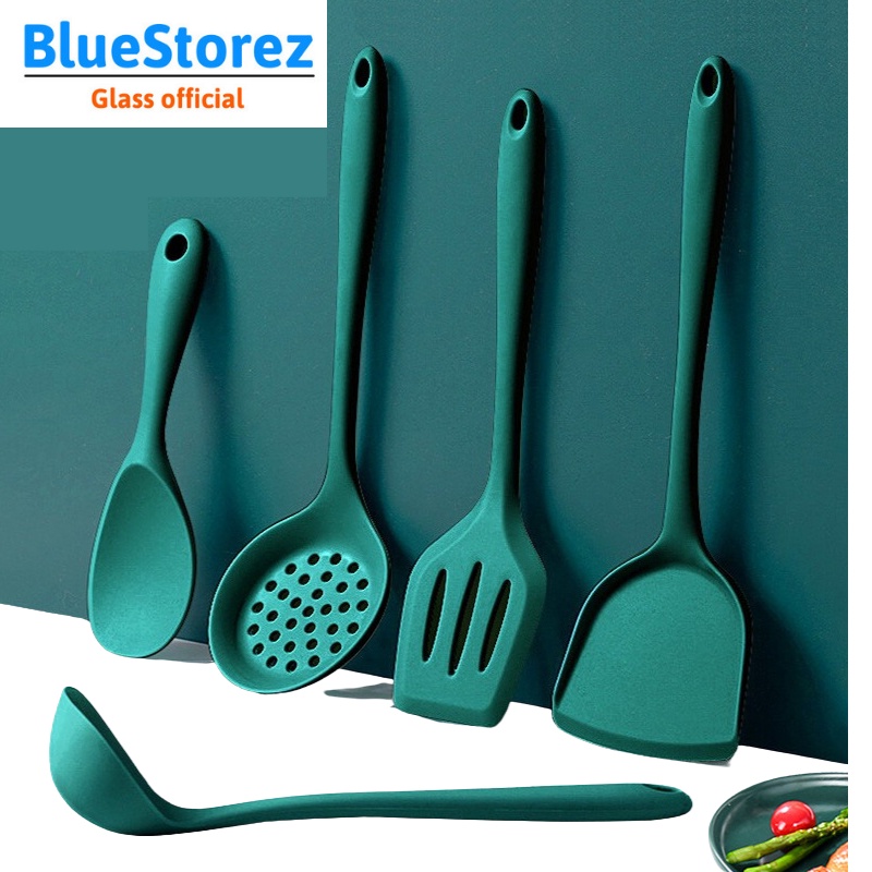 Nhà cửa & Đời sống > Dụng cụ nhà bếp > Cây vét bột & đồ gắp thức ăn || Bộ dụng cụ thìa nấu ăn nhà bếp Silicon , Set đồ dùng nấu ăn nhà bếp Silicon 5 món chống dính cao cấp Kitchen-BLUE STORECòn hàng