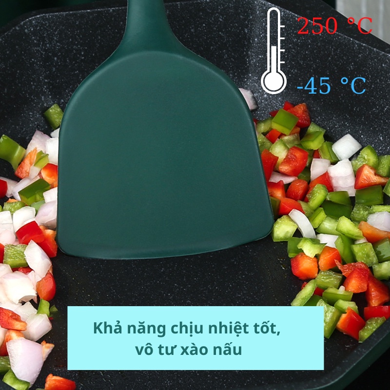- Thìa nấu ăn silicone với thiết kế liền, độ hoàn thiện cao, chắc chắn, các chi tiết gán rất.