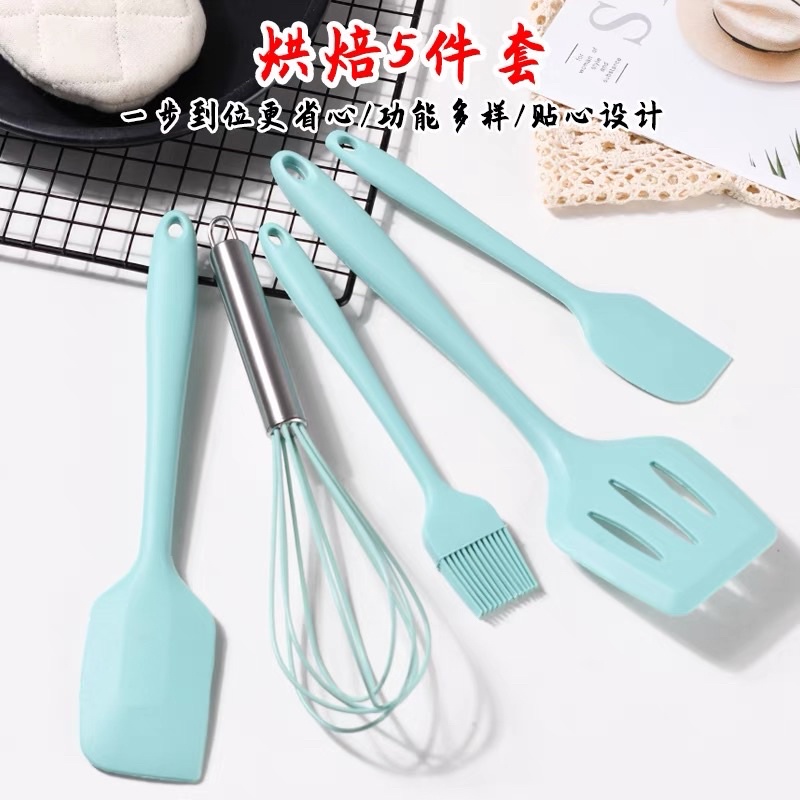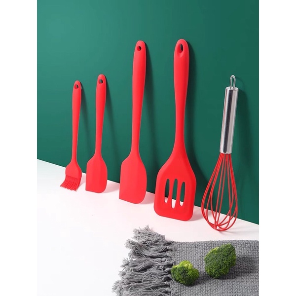 Nhà cửa & Đời sống > Dụng cụ nhà bếp > Cây vét bột & đồ gắp thức ăn || Dụng cụ thìa nấu ăn nhà bếp silicon 5 món chịu nhiệt chống dính cao cấp , Đồ dùng nấu ăn nhà bếp cao cấp Cam HomewareCòn hàng