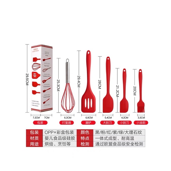 Giới thiệu Dụng cụ thìa nấu ăn nhà bếp silicon 5 món chịu nhiệt chống dính cao cấp , Đồ dùng nấu ăn nhà bếp cao cấp Cam Homeware