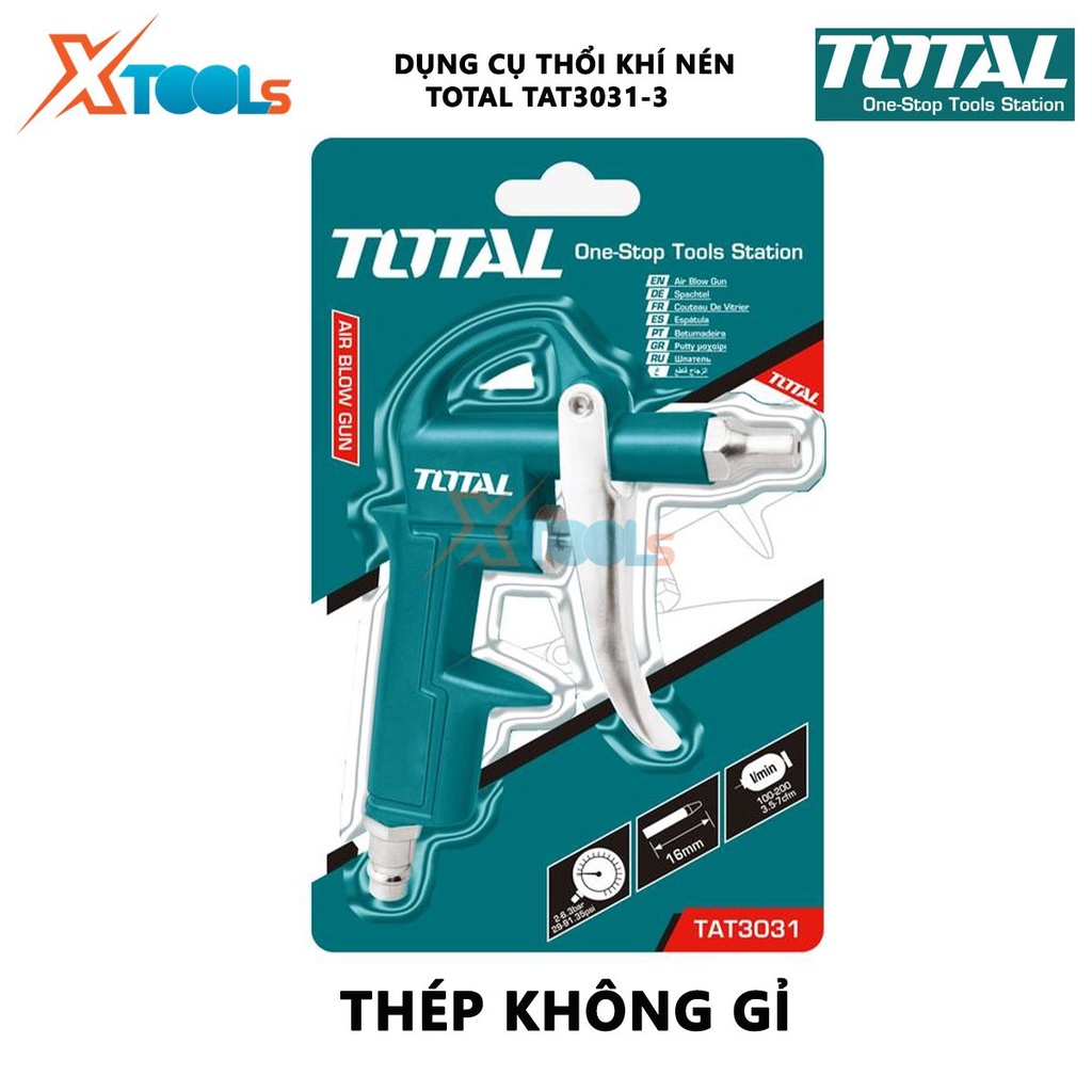 Nhà cửa & Đời sống > Dụng cụ & Thiết bị tiện ích > Dụng cụ > Máy thổi || Dụng cụ thổi khí Total TAT3031-3 Súng xịt thổi khí Chiều dài ống phun 16mm Đầu nối kiểu Nitto phụ kiện của máy nén khíCòn hàng
