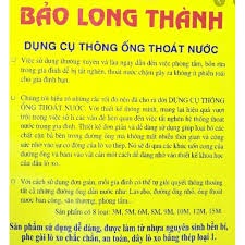 Dụng cụ thông cống Bảo Long Thành (5m, 10m 15m)Bạn đang lo lắng vì đường ống trong nhà bị tắc, bạn đã làm đủ mọi cách mà không có tác dụng. Đừng lo, đã có dụng cụ thông cống Bảo Long Thành.