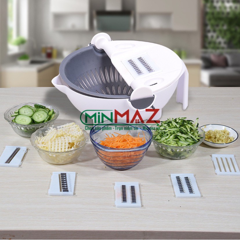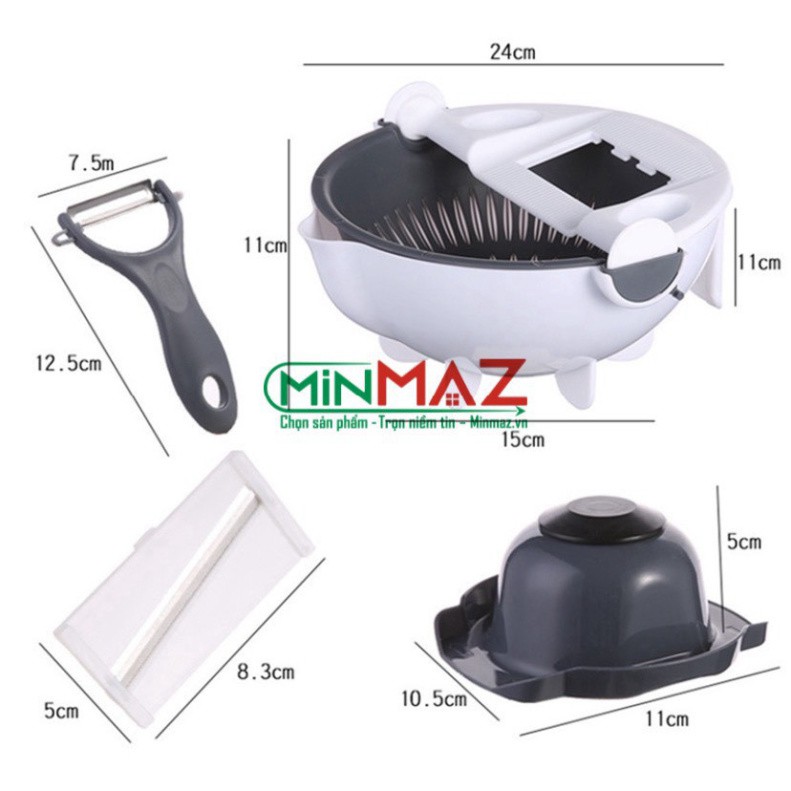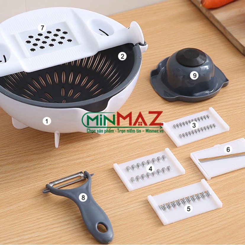 Bộ Dụng Cụ Thông Minh Đa Năng Bào Cắt Gọt Rau Củ Quả 9 trong 1 Kèm Rổ Đựng - FreeShip
