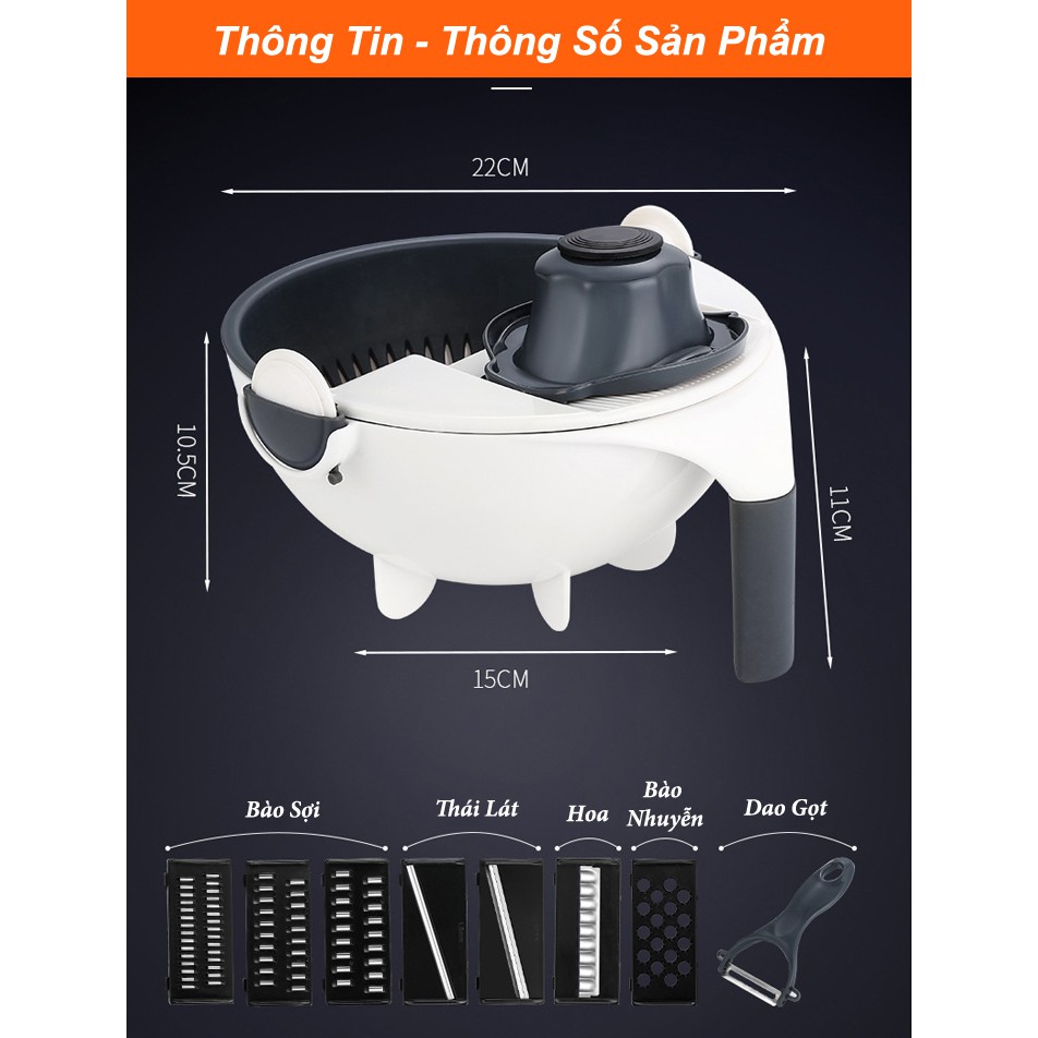 Bộ Dụng Cụ Thông Minh Nạo Rau - Củ - Quả Kèm Rổ 9 Trong 1 Đa Năng,Dụng Cụ Bào Sợi, Thái Lát, Cắt Rau Củ Quả