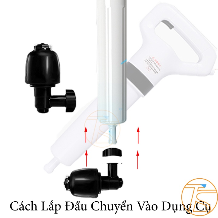 Đi kèm thân súng là có 1 đầu nối làm bằng nhựa cứng, được đấu vào miệng súng bằng các khớp nối chuyên dụng, đầu này có thể xoay tròn 360 độ để thông tắc cho các trường hợp nghẽn cho thông bồn cầu
