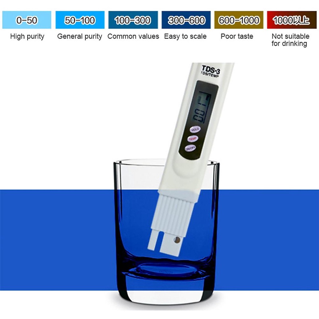 THÔNG SỐ KỸ THUẬT Bút thử nước sạch TDS – Meter Hold 3Phạm vi đo : 1-999 PPM.