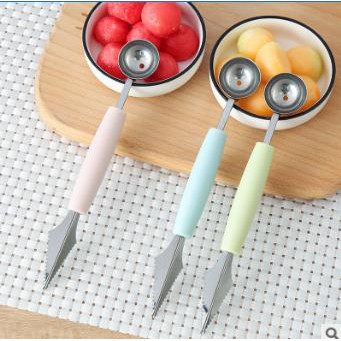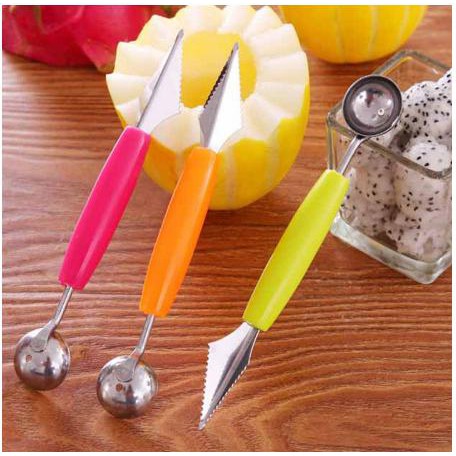 Muỗng hai đầu được thiết kế gồm 2 đầu, một đầu dùng để múc các loại quả mềm như dưa hấu, đu đủ, thanh long… một đầu để tỉa rau củ, hoa quả, cho bạn gái thể hiện sự khéo léo và cắt tỉa nhiều dĩa hoa quả bắt mắt cho cả gia đình.
