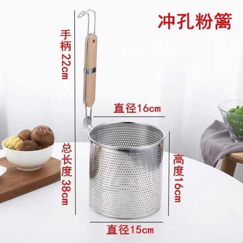 Chần bún inox loại dày dặn, chắc chắn, đảm bảo vệ sinh an toàn thực phẩm, được ưa dùng trong các gia đình, nhà hàng, bếp ăn tập thểKích thước giỏ: Đường kính 13.7 cm x cao 14cm. Kích thước phủ bì dài 37.5cm