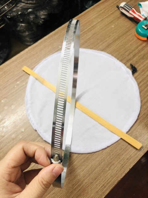 Bộ dụng cụ tráng bánh cuốn chuyên nghiệp bao gồm: 1 đai xiết inox 201, 1 miếng vải , 1 que lấy bánh hàng chất lượng cao . Rất thuận tiện cho việc tráng và lấy bánh , đai xiết giữ cố định mỗi lần căng vải tiện lợi , nhanh và dễ dàng.Vải căng được làm bằng vải Kate vơi thiết kế thông minh, với dây rút kết hợp với 1 lỗ luồn que căng vải giúp ta dễ dàng căng vải.