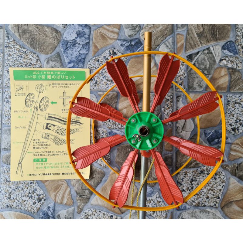 Bộ dụng cụ treo cờ Koinobori, hàng nội địa Nhật, đã qua sử dụng, thiếu 1 quả cầu tròn ở trên cùng, đủ ốc vít và dây, không bao gồm cá, phù hợp treo cá có độ dài tối đa 1,2 mét.Giá LOULOU