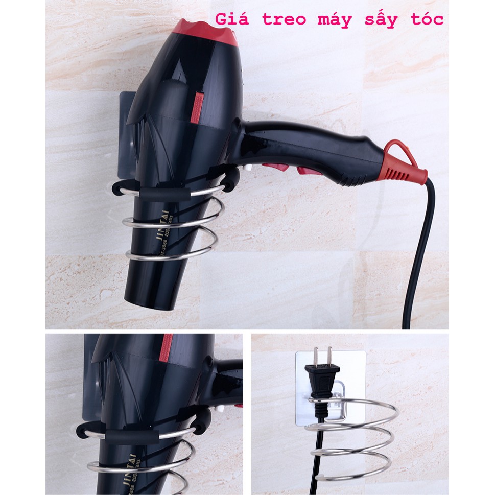Dụng cụ treo máy sấy tóc, giá kệ treo máy kiểu cơn lốc xoán. Chất liệu Inox, Miếng gián chịu lực Flex Dule. Aone mall