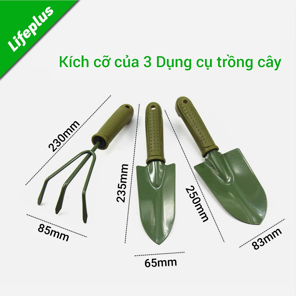 Bộ sản phẩm gồm: 1 xẻng xúc, 1 cào đất, 1 xẻng xới