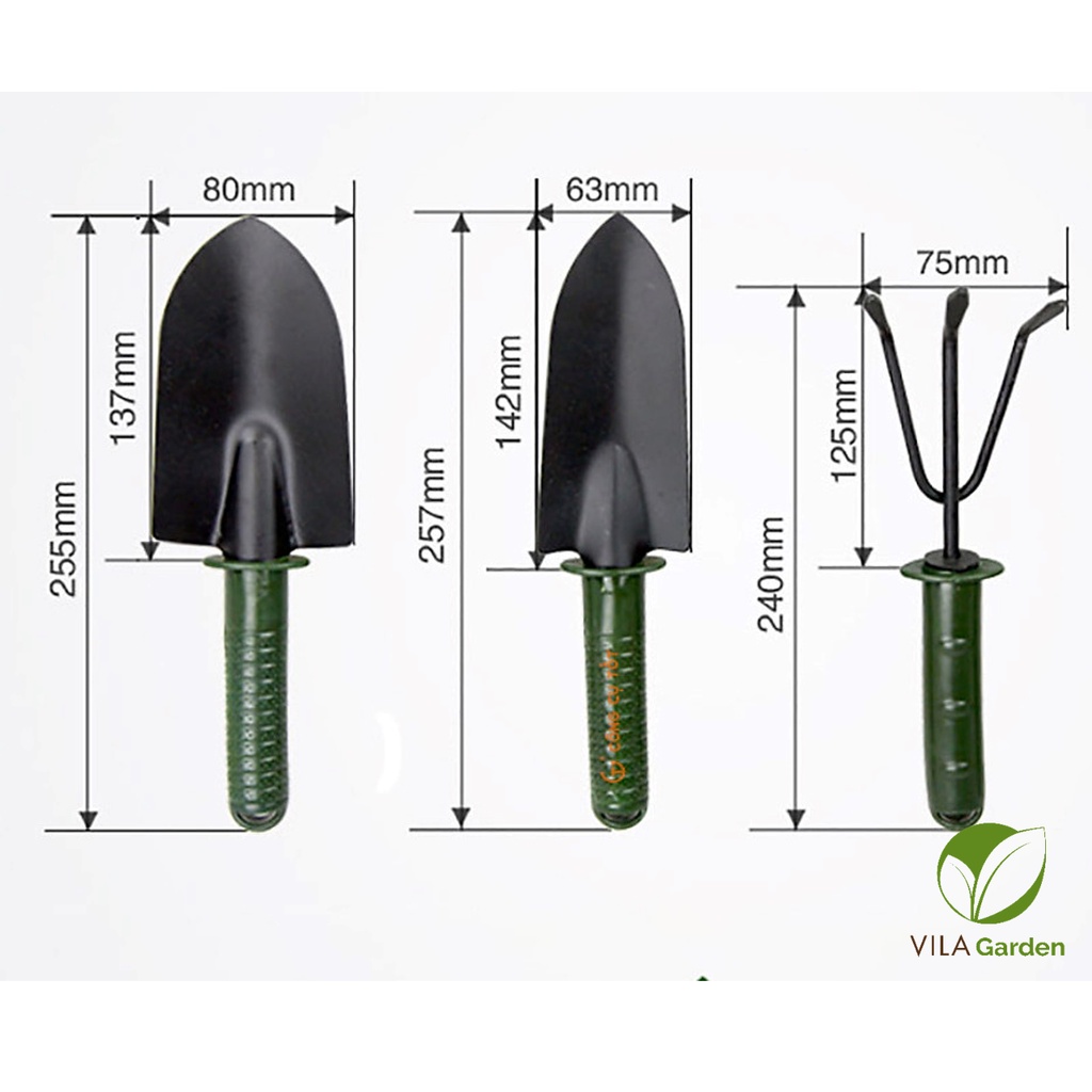 Bộ sản phẩm gồm: 1 xẻng xúc, 1 cào đất, 1 xẻng xới