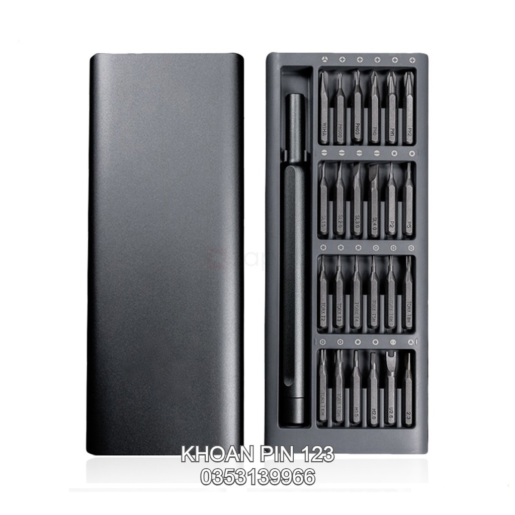 Mô tả sản phẩm Bộ dụng cụ tua vít bỏ túi đa năng 25 chi tiết chuyên sửa chữa điện thoại, laptop, đồ gia dụng:+bộ 25 chi tiết:- Bao gồm 24 đầu tua vít với kích cỡ, kèm một tay cầm.