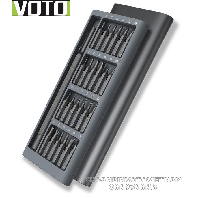+ bộ 25 chi tiết: Bao gồm 24 đầu tua vít với kích cỡ, kèm một tay cầm.