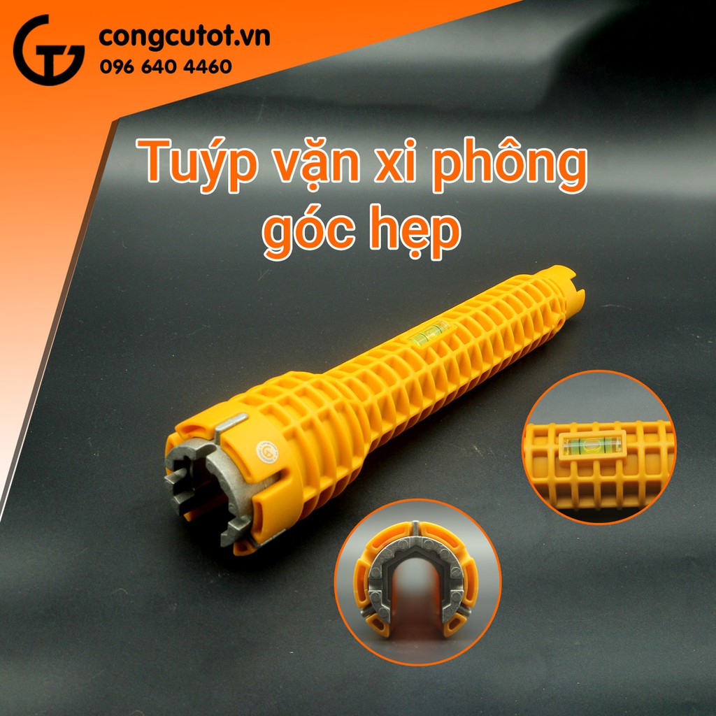 Tuýp vặn xi nhông góc hẹp là một sản phẩm đa năng , tiện dụng cho việc tháo lắp xi phông thiết bịTuýp vặn có bọt thủy chuẩn cân bằng ở giữa tay cầm