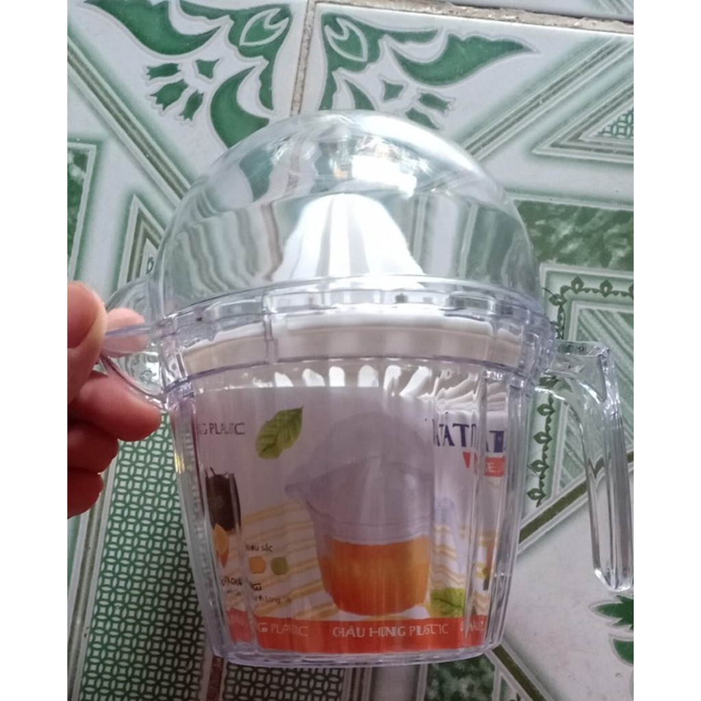 Dụng cụ vắt cam bang mica trong suot được thiết kế giúp người sử dụng dễ dàng thao tác. Đầu vắt hình chóp nhọn cùng các đường gân nhỏ, giúp vắt kiệt nước cam, chanh nhanh chóng, tiện lợi. Khay chứa nước dễ dàng chùi rửa sau khi sử dụng. Dụng cụ có kích thước gọn nhẹ, tiết kiệm không gian phòng.Sản phẩm được sử dụng đơn giản, không cần dùng điện như những thiết bị khác nên phù hợp với nhiều đối tượng, kể cả trẻ em hoặc người lớn tuổi. Đặc biệt, các bộ phận được tháo lắp dễ dàng, giúp người nội trợ thuận tiện rửa, vệ sinh sau khi sử dụng.san pham y hinh 100% tu chup