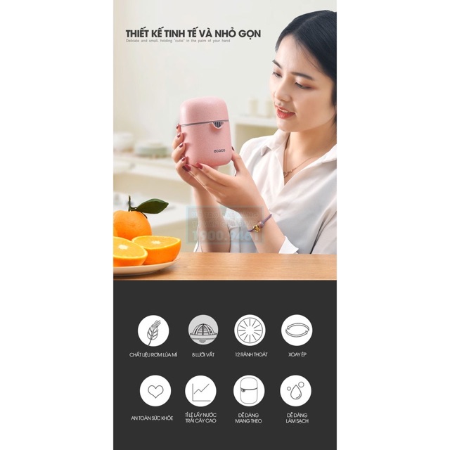 Vắt Cam, Nghiền Hoa Quả Thông Minh Ecoco giúp bạn thao tác đơn giản trong việc vắt nước cam bằng tay, thêm vào đó sản phẩm còn giúp bạn nghiền đủ mọi loại hoa quả, dễ dàng mang theo bất cứ nơi nào.