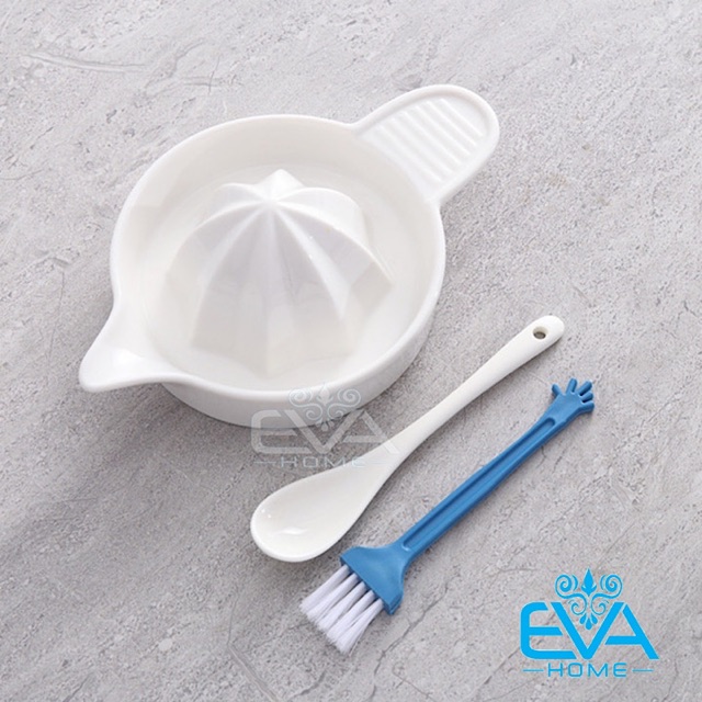 Dụng Cụ Vắt Cam Sứ Trắng Cao Cấp Tặng Kèm Muỗng Nhỏ Và Cọ Quét