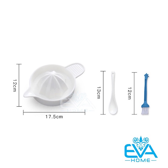 - Bộ sản phẩm gồm : 1 dụng cụ vắt bằng sứ , 1 muỗng sứ , 1 cọ quét nhựa