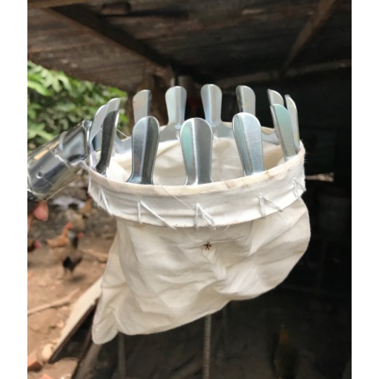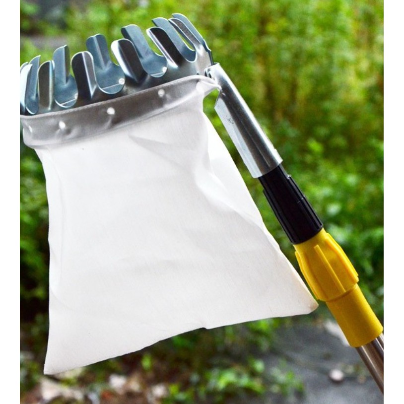 ** Thu hoạch trái cây trên cao là công việc khó khăn, nhất là thu hoạch các loại cây ăn trái có tán to cao rộng như xoài, vú sữa, thanh trà, măng cụt. Bình thường nhà vườn thường dùng các loại lồng bằng tre đan để thu hoạch nhưng chúng có nhược điểm là không giữ lại cuống được, trái cây dễ bị trầy sướt, lồng nhanh hỏng yếu ớt.** Với thiết kế thông minh, chuyên dụng sản phẩm vợt hái trái cây trên cao đa năng kèm túi vải, dụng cụ hái hoa quả kim loại hiện đang là một trong những dụng cụ được ưa chuộng.