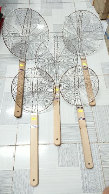Vợt vớt mì hoặc các đồ chiên cán gỗ dàiVòng vợt bằng inox cho time sử dụng bền