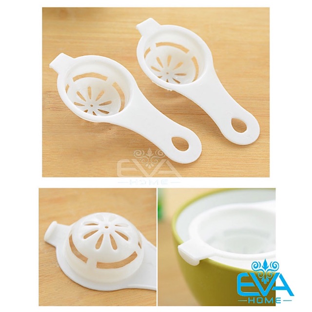 - Công Dụng : Dụng cụ tách được thiết kế như một cái lưới vợt bằng nhựa , Bạn chỉ cần đập trứng vào dụng cụ tách lòng đỏ trứng này và lắc nhẹ, lòng trắng sẽ chảy xuống dưới và còn lại lòng đỏ nguyên vẹn ở trên cái vợt.Dụng cụ tách này đặc biệt hữu hiệu khi bạn dùng để làm bánh.Chế biến một số món ăn cầu kỳ, hấp dẫn hoặc để đắp mặt nạ.
