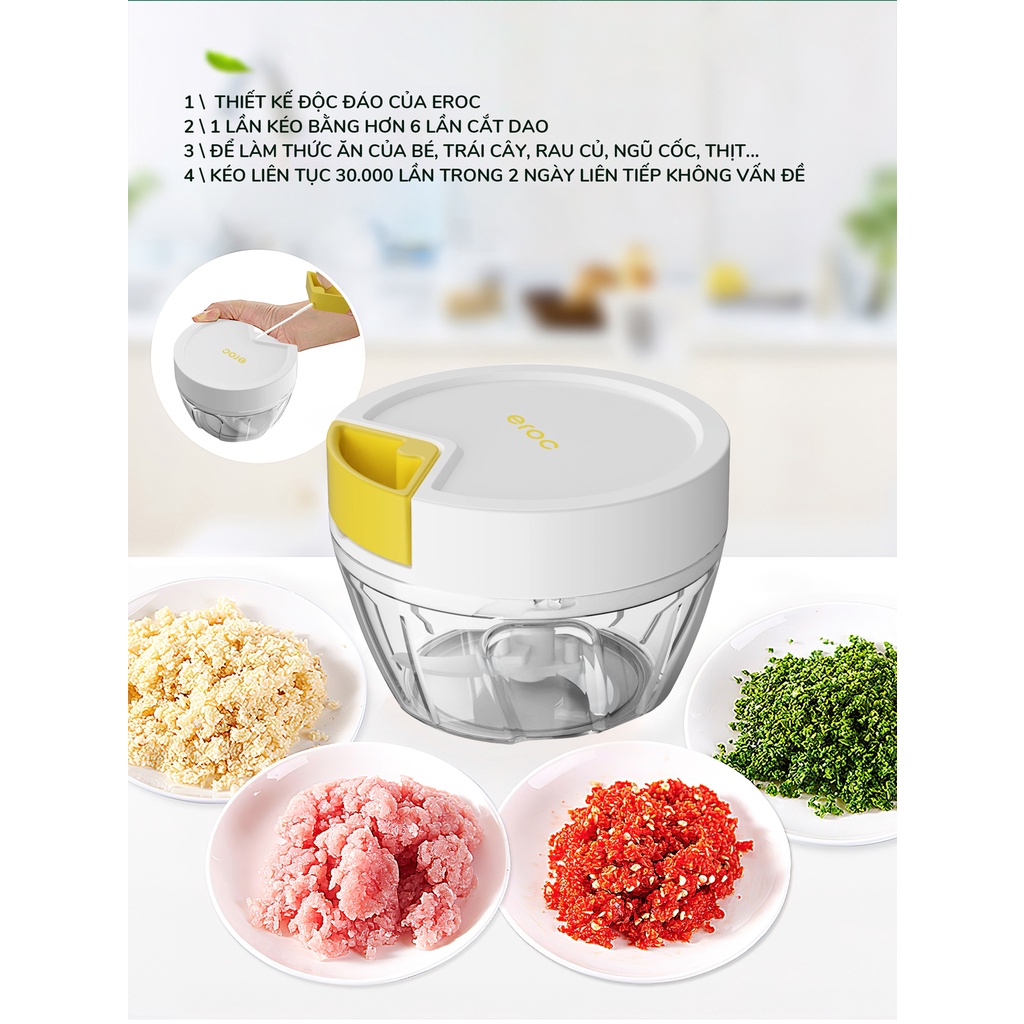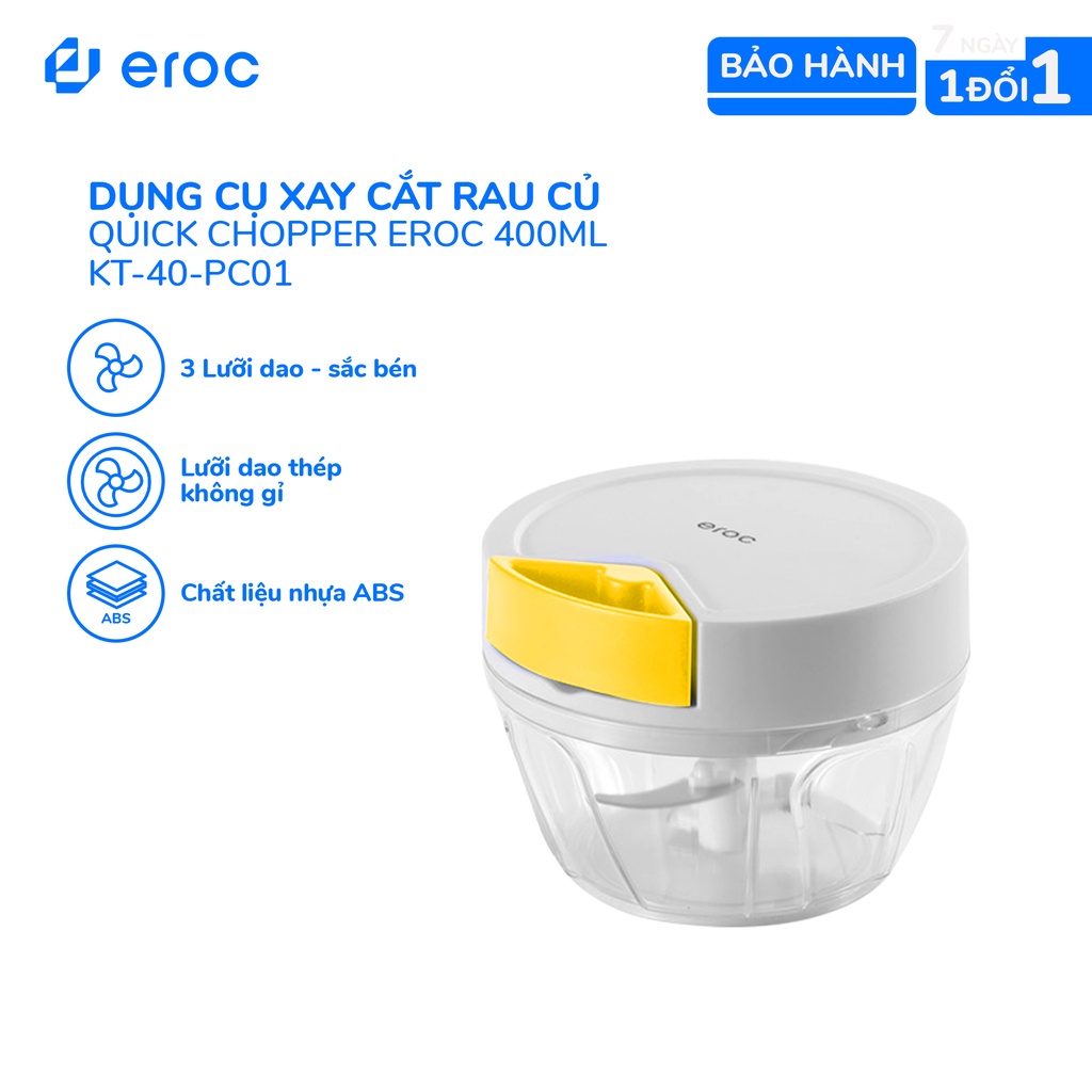 Dụng Cụ Xay Cắt Rau Củ Quả 3 Lưỡi Dao Hàng Cao Cấp 400ml Quick Chopper Eroc V-KT-40-PC01 - Hàng Chính Hãng Eroc