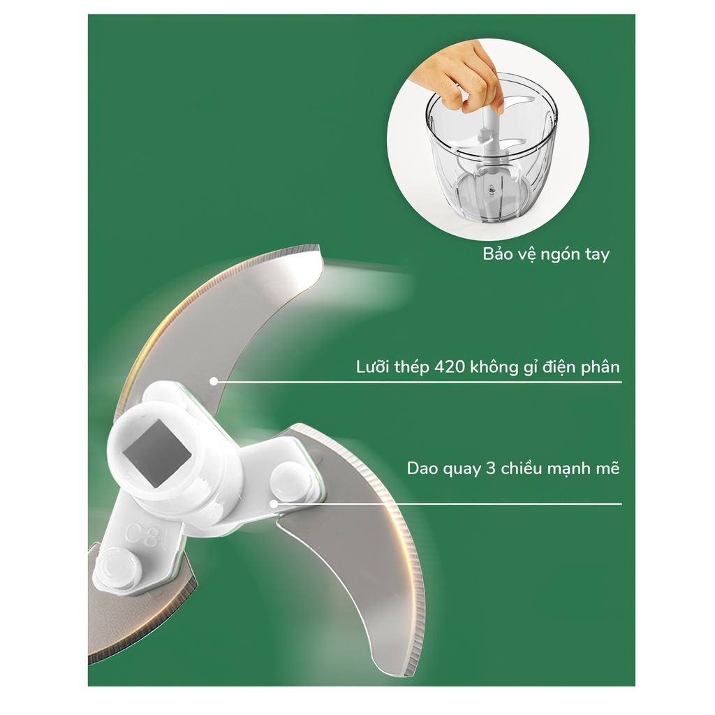 Thiết Bị Điện Gia Dụng > Đồ gia dụng nhà bếp > Máy ép, Xay sinh tố & Máy làm sữa đậu nành || Dụng Cụ Xay Cắt Rau Củ Quả 3 Lưỡi Dao Bằng Tay 400ml Quick Chopper Eroc V-KT-40-PC01 - Hàng Chính Hãng ErocCòn hàng