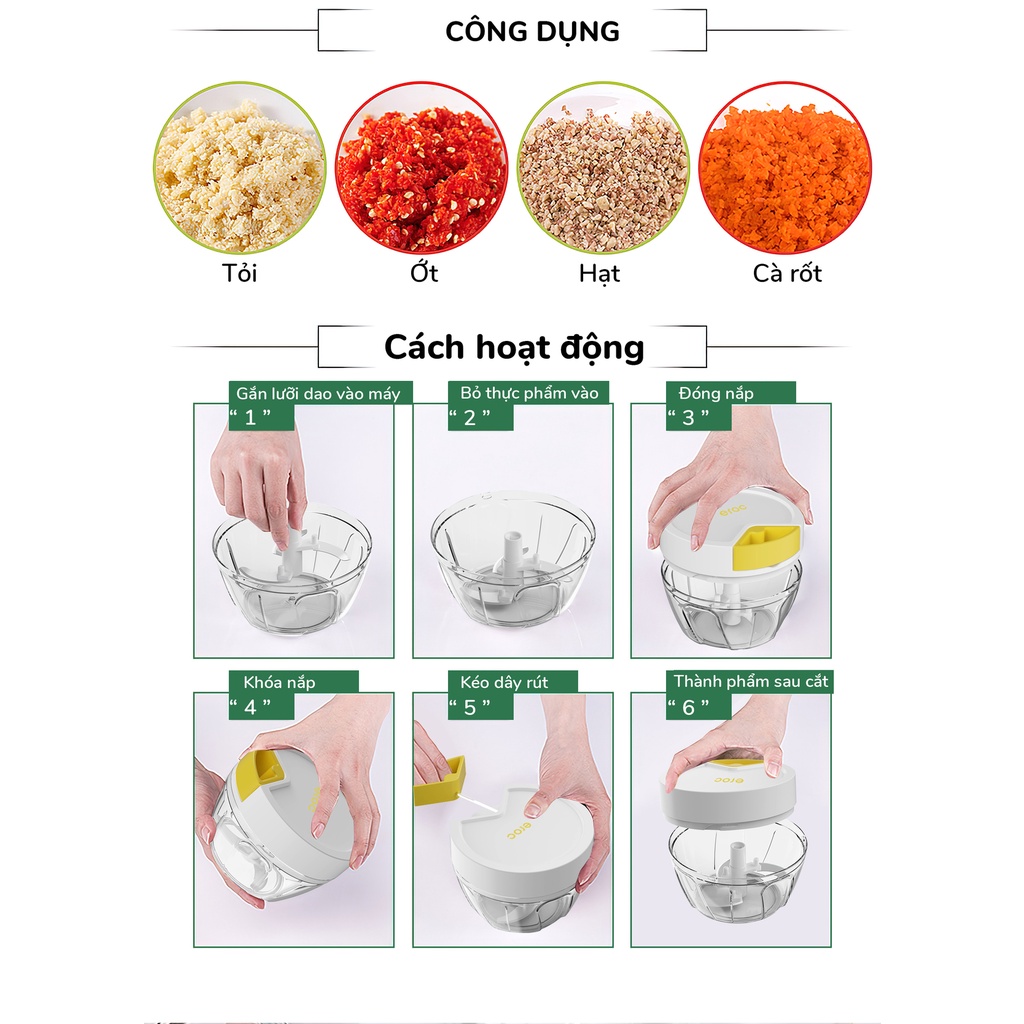 Giới thiệu Dụng Cụ Xay Cắt Rau Củ Quả 3 Lưỡi Dao Hàng Cao Cấp 400ml Quick Chopper Eroc V-KT-40-PC01 - Hàng Chính Hãng Eroc