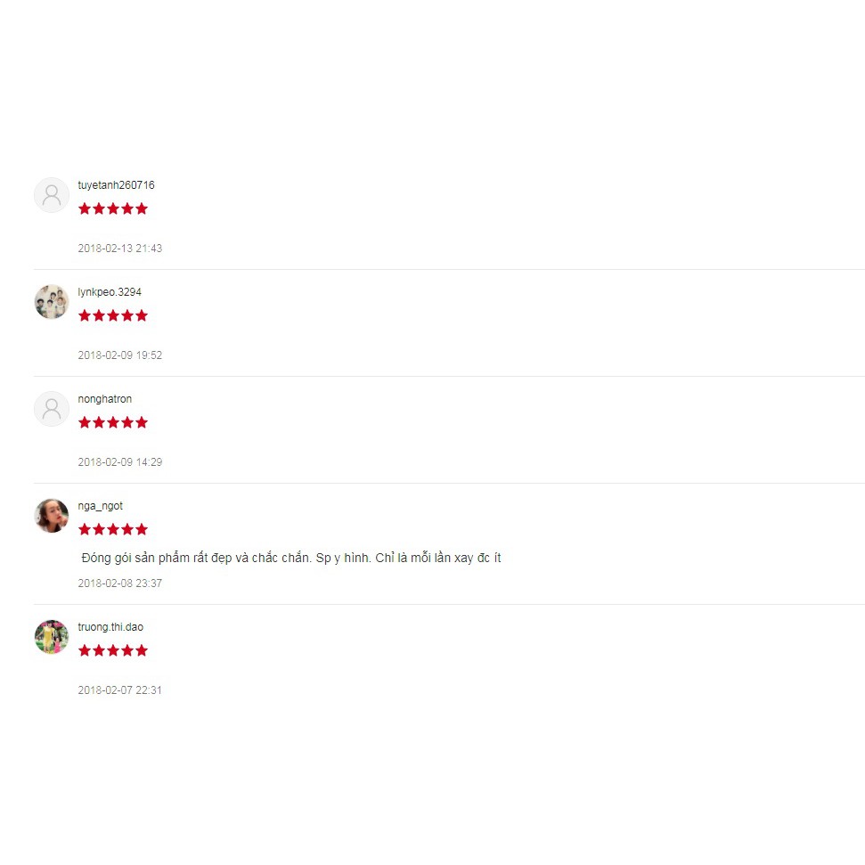 " Nhận đủ hàng nói chung chất lượng cũng ok đóng gói vận chuyển tốt "" Xay hơi đau tay sản phẩm dùng tốt, phù hợp giá tiền, shop thân thiện, nhiệt tình, chuyên nghiệp "