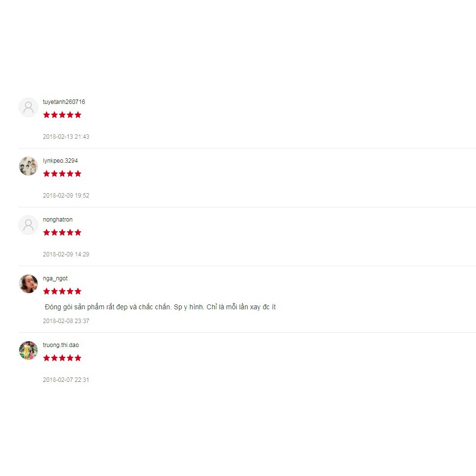 " Nhận đủ hàng nói chung chất lượng cũng ok đóng gói vận chuyển tốt "" Xay hơi đau tay sản phẩm dùng tốt, phù hợp giá tiền, shop thân thiện, nhiệt tình, chuyên nghiệp "