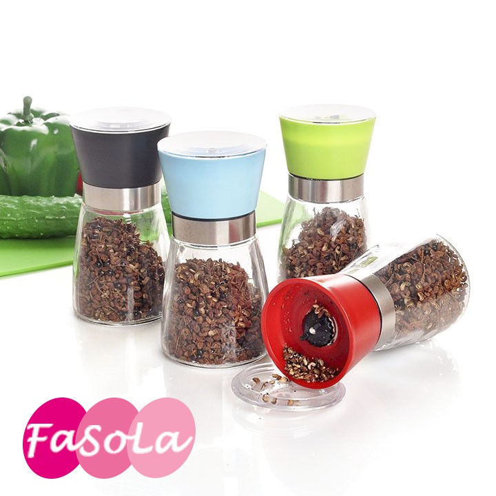 Giới thiệu Dụng cụ xay tiêu cầm tay nắp nhựa, lọ xay hạt tiêu tiện dụng FASOLA