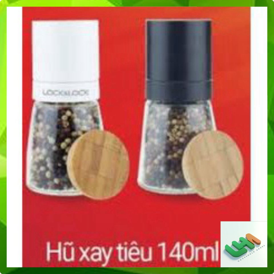 Dụng cụ xay tiêu cầm tay thủy tinh Lock&Lock dung tích 140ml lưỡi sứ nắp gỗ sồi tiện dụng CKO115