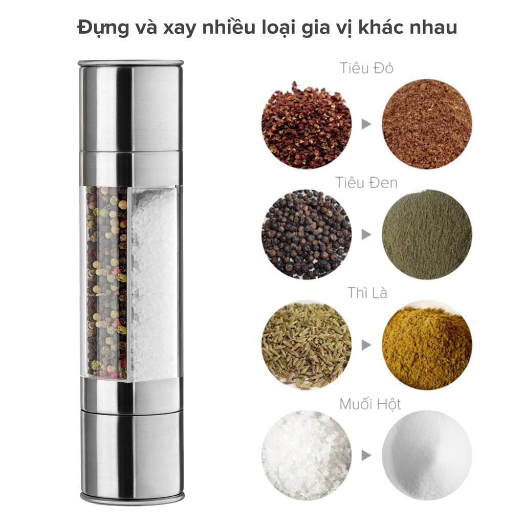 Dụng Cụ Xay Tiêu Gia Vị 2 Đầu (2 trong 1) Inox Hàng Cao Cấp