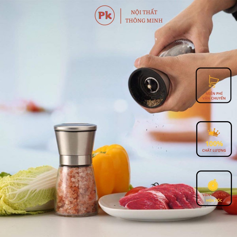 - Vừa là dụng cụ đựng, bảo quản tiêu hạt, vừa giúp xay nhuyễn nhanh chóng, rắc tiêu trực tiếp lên bề mặt món ăn.