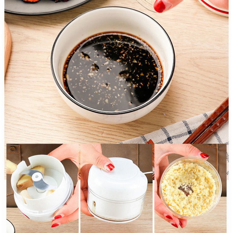 Dụng cụ xay tỏi ớt bằng tay Mini Food Chopper Tiện Dụng, Máy xay nhuyễn tỏi ớt hành gia vị cầm tay 2 lưỡiDụng cụ xay tỏi, ớt, rau, củ quả đa năng giúp chị em xay tỏi, ớt, rau, củ, quả, thịt, cá một cách dễ dàng nhang chóng để chế biến những món ăn ngon cho cả nhà. Đặc biệt với gia đình có con nhỏ đang ăn dặm thì dụng cụ này vô cùng hữu ích để các mẹ nghiền thức ăn cho bé yêu đang tập ăn