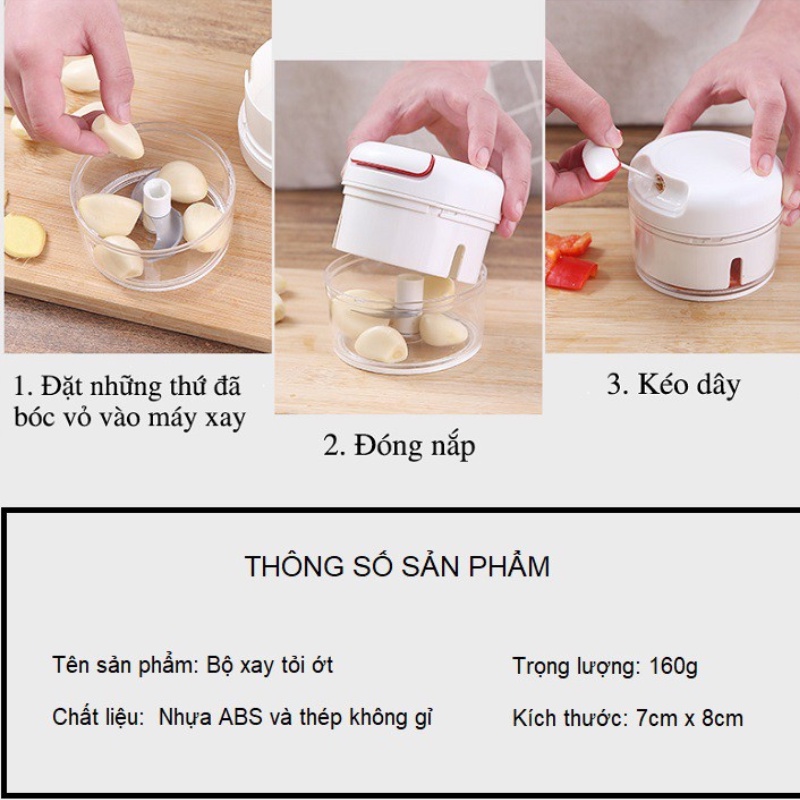 Dụng cụ xay tỏi ớt cầm tay đa năng thế hệ mới, xay tỏi ớt kéo tay mẫu mới