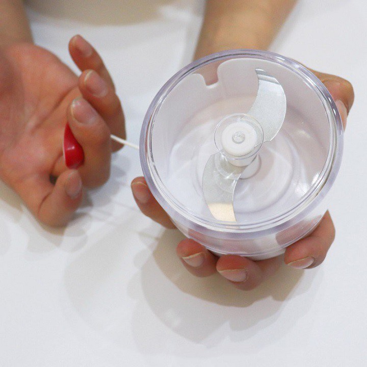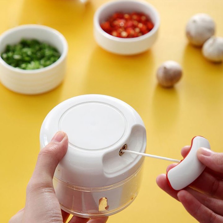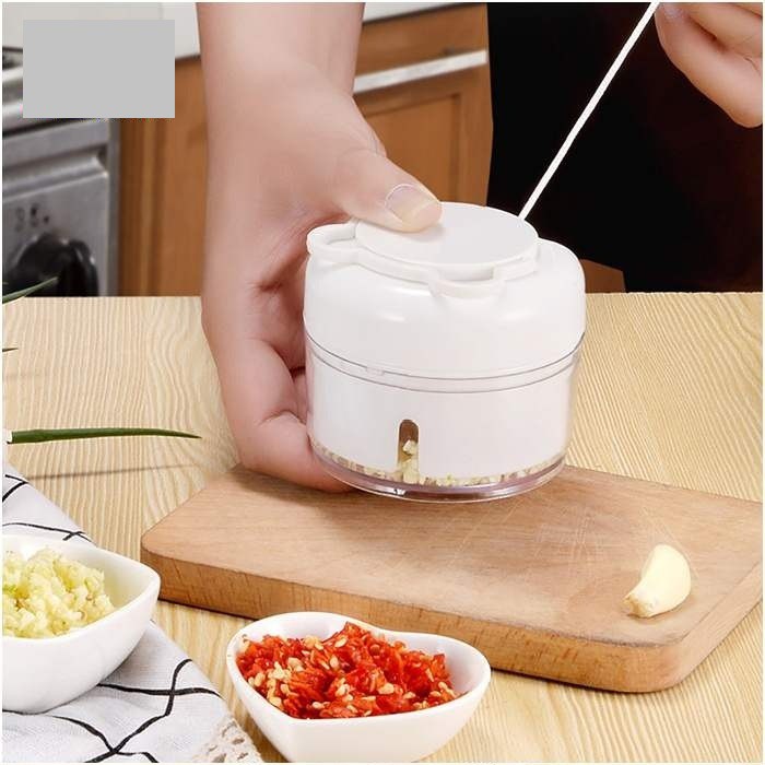 Dụng cụ xay tỏi ớt cầm tay dây rút 2 lưỡi dao tiện dụng