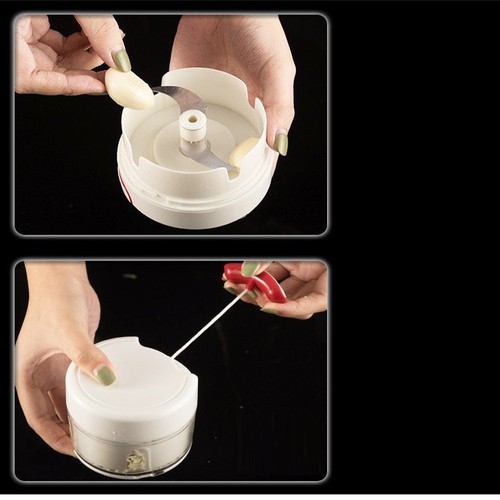 MÁY XAY TỎI ỚT ĐA NĂNGLưu ý: vì là hàng mới nên các khớp máy sẽ cứng và ko dc trơn chu trong lần sử dụng đầu tiên.nên khách khi sử dụng tuyệt đối ko dc kéo dây hết cỡ.gây kẹt dây.chỉ kéo vừa phải đủ tầm thồi thả ra.nếu ko may kéo mạnh quá dây bị kẹt thì chỉ việc ấn tay vào trục xoay màu trắng ở giữa là dây sẽ nhả ra và xay dc bình thường.